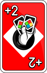 +2 (Draw Two) ➕2️⃣ Quando você joga, o próximo jogador precisa pegar duas cartas extras. É como dar um presentinho surpresa… mas que ninguém quer ganhar!